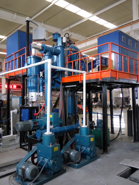 真空感應凝鑄爐是利用中頻感應加熱原理,在真空或保護氣氛下,將稀有金屬或特種合金在熔煉坩堝內熔化后,澆入凝鑄模具內,凝鑄模具通過電阻加熱進行恒溫保溫,在恒溫狀態(tài)下,由模具升降機構通過一定速度緩慢將模具移出保溫感應器,通過模具底部托盤水冷及外部水冷罩將金屬液體冷卻凝固;是為各種稀有金屬及特種合金及其它材料的工業(yè)生產和試驗而設計的;真空感應凝鑄爐還具有傳統(tǒng)鑄錠功能,能實現緩冷鑄棒和傳統(tǒng)鑄錠的快速切換。